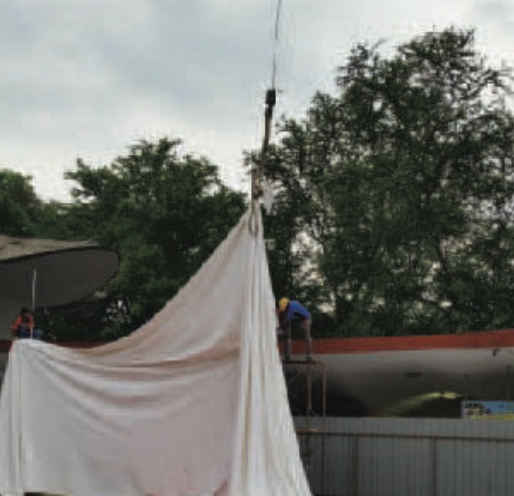 An Inverted Cone Structure is a type of tensile fabric / membrane structure where the roof is shaped like an upside-down cone. Instead of pointing upwards, the peak of the cone points downwards, creating a unique architectural design.